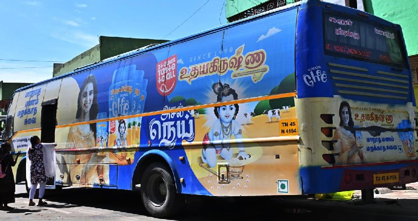 Bus ads include full wraps, side panels, and interior stickers. They are cost-effective and offer repeated visibility along fixed routes. This makes them ideal for education institutions, healthcare services, and budget FMCG brands.